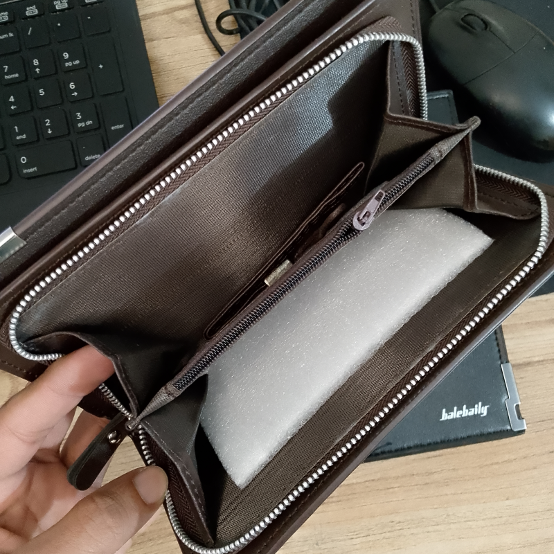 Stay stylish and organized with this microfiber synthetic leather wallet featuring 1 photo window, 12 card slots, a secure zipper phone pocket, and 2 ticket pockets. Designed for both men and women, it offers lightweight durability in two elegant colors, Black & Brown. Compact yet spacious for everyday essentials. Enjoy 7-day return policy and fast delivery within 2–3 working days with free home delivery!